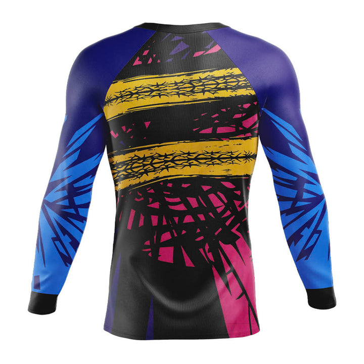 Cut through the trees in electric magenta, cobalt and yellow bands over deep black. A statement MTB jersey for jump lines, technical descents, and all-day trail sessions.