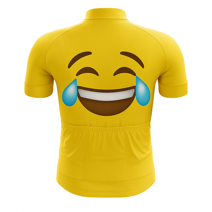 Crack up the peloton with this Laughing Emoji cycling jersey, featuring a joyful yellow base with wide grin and your choice of 1 tear for a light-hearted chuckle or 2 tears for side-splitting hilarity on every mile. Quick-dry breathable fabric for road cycling, group rides, trail laughs, and social spins—essential for humor-loving cyclists in expressive emoji bike wear.